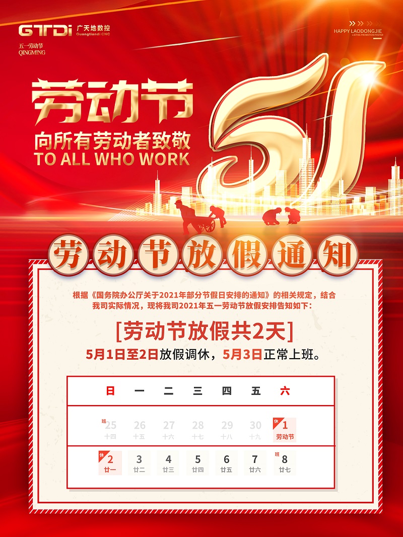 DB电竞(DBGame)数控2021年五一劳动节放假通知